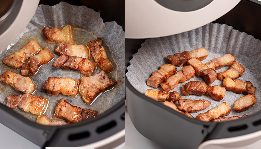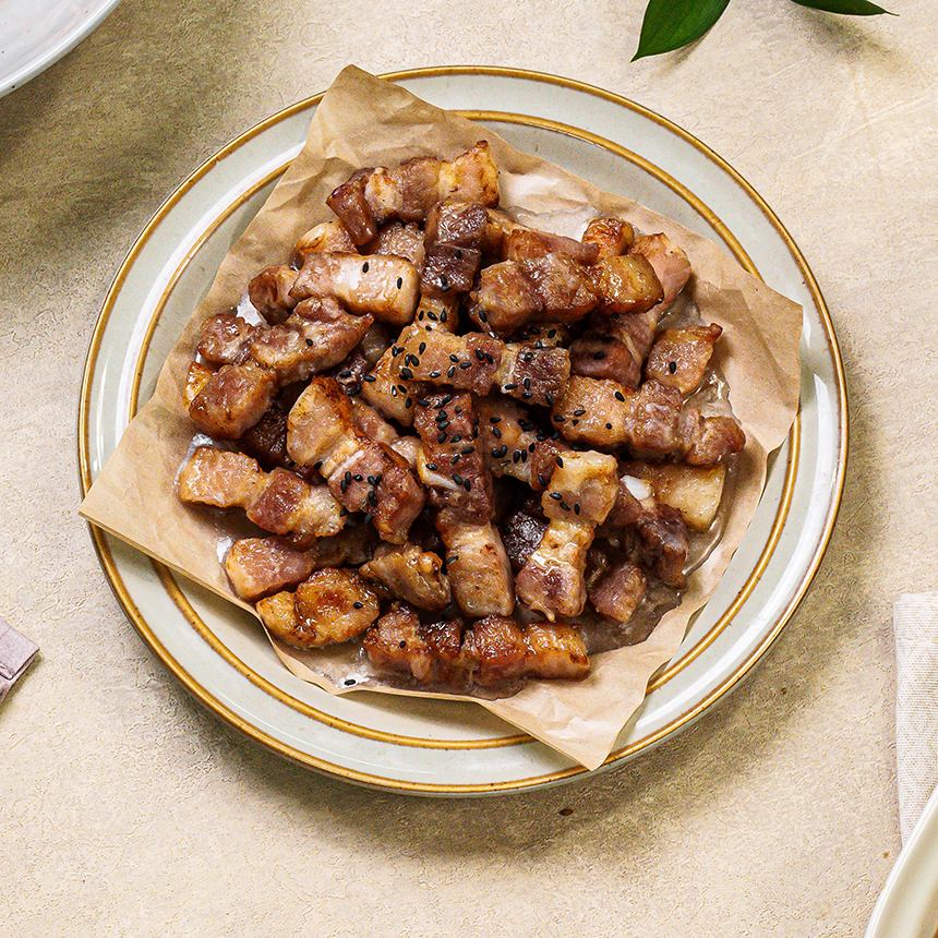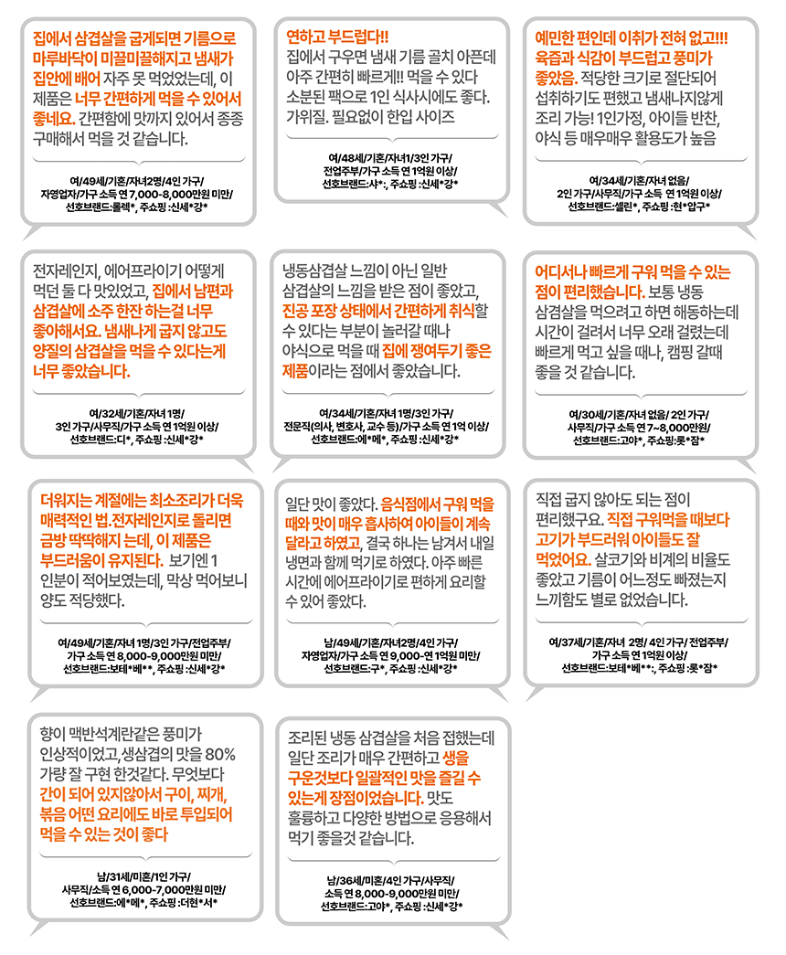 “냉동실에서 꺼내 바로 에어프라이어에 먹는데 고기집에서 먹는 맛이나요.”