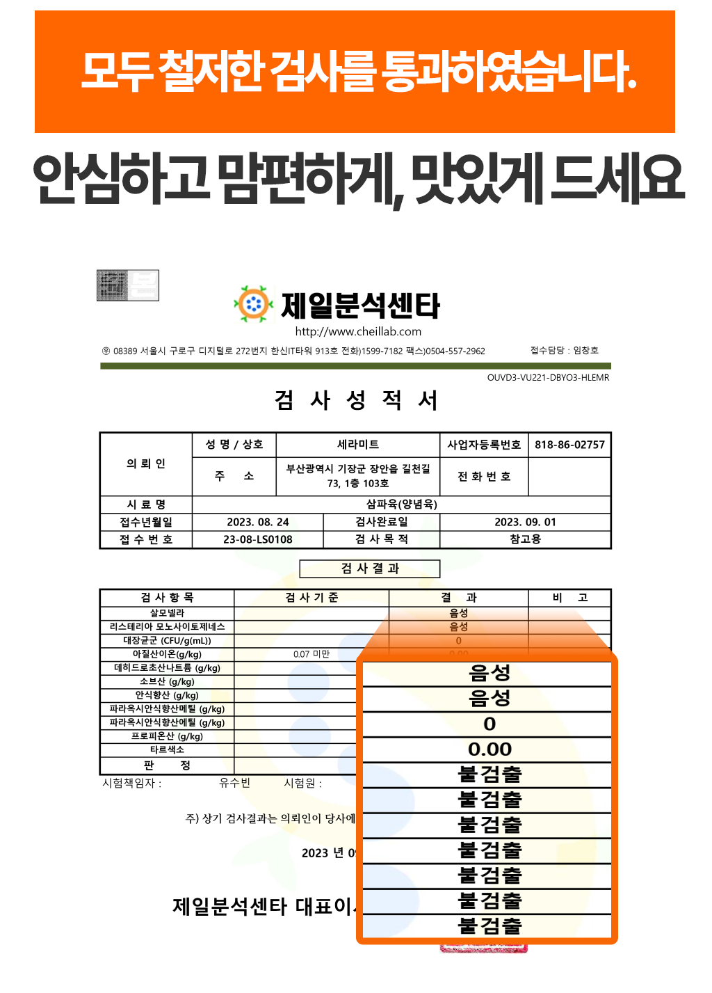 심지어 사용한 소금 한톨까지 철저하고 깐깐하게, 중금속 검사까지 완료!!